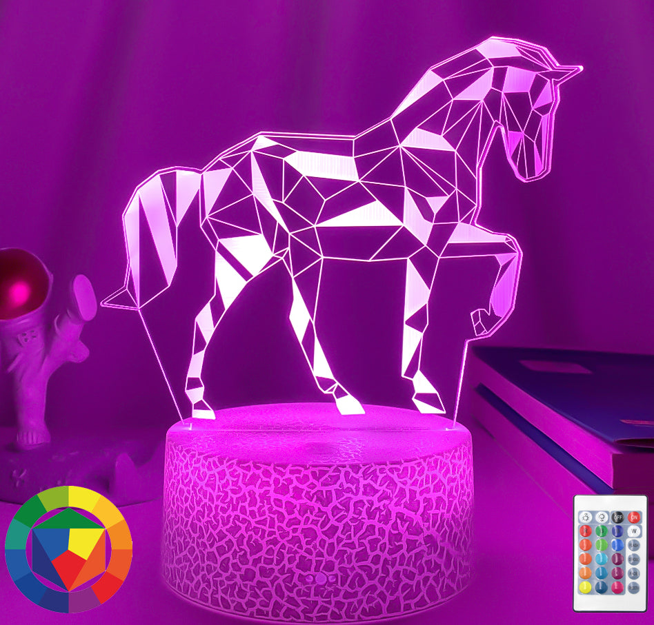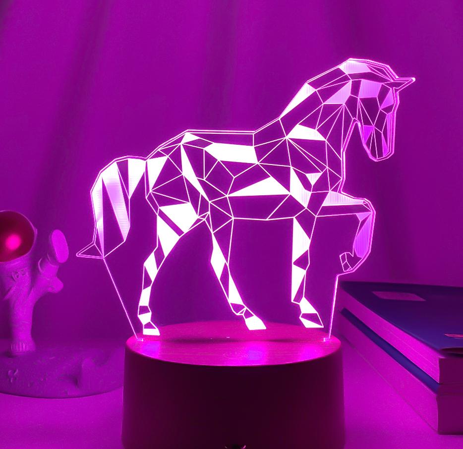 Oplev magien med vores 3D LED sengelampe med heste illusion