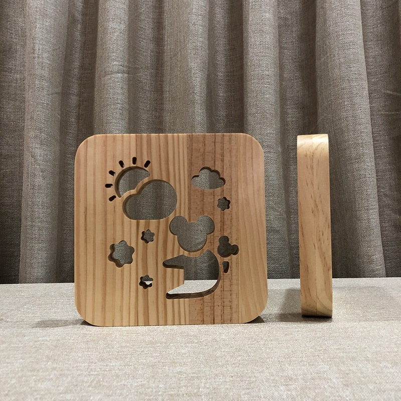 Forvandl dit børneværelse eller soveværelse til et hyggeligt og drømmende univers med vores charmerende 3D natlampe i træ med koala. Denne unikke lampe er mere end bare en lyskilde; den er en lille fortælling udskåret i smukt, naturligt træ, der skaber en beroligende atmosfære. Forestil dig de bløde, varme lysstråler, der danser gennem udskæringerne af en sød koala, sol, skyer og stjerner, og fylder rummet med et mildt skær. Perfekt til at skabe tryghed ved sengetid, eller som en dekorativ detalje der tilføjer personlighed og varme til indretningen. Gør natten lidt mere magisk og drømmene sødere for både store og små med denne hyggelige lampe.