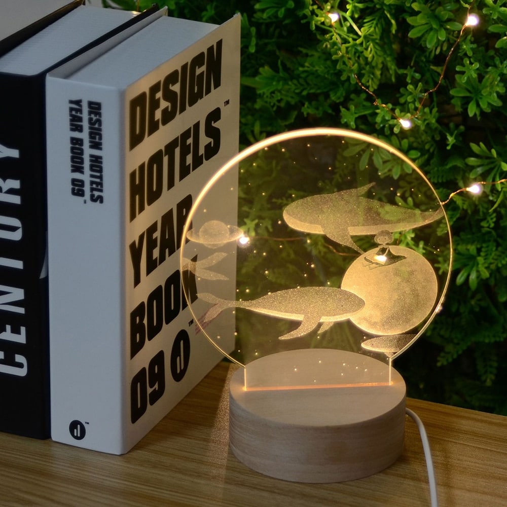 Gør din nat mere eventyrlig med denne akryl natlampe med hvaler.