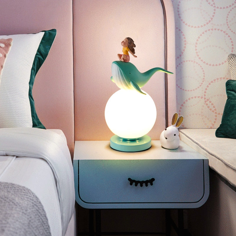 Eventyrlig blåhval natlampe til børneværelset