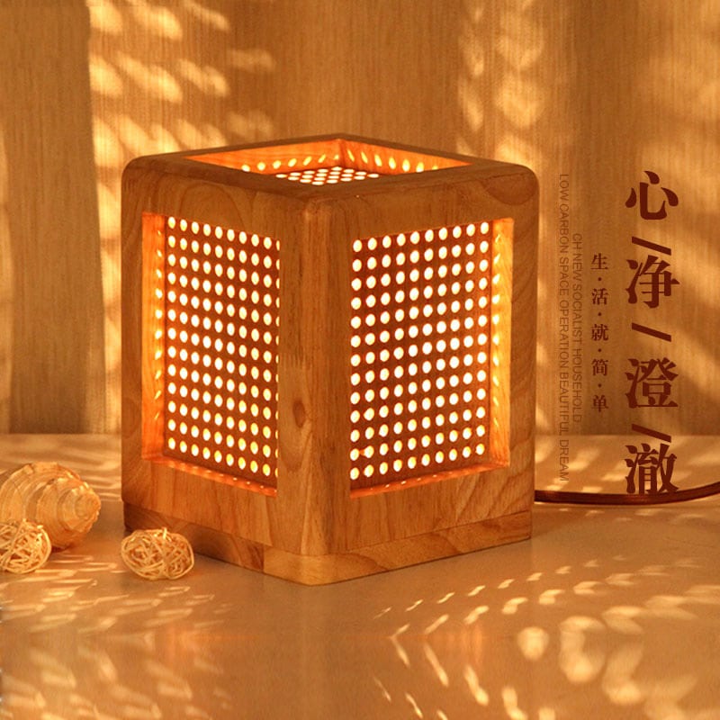 Oplev hygge med vores firkantet sengelampe i massivt træ