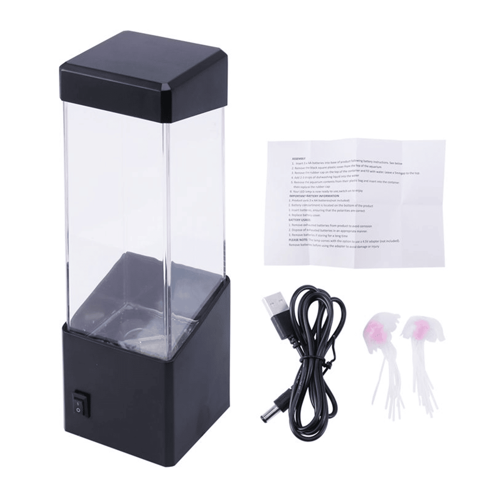Denne lampe er designet til at stimulere fantasien og skabe en hyggelig stemning. De realistiske vandmænd, der svæver i vandtanken, ligner ægte havdyr og bevæger sig yndefuldt med vandets strømme. Med et enkelt tryk på en knap kan du skifte mellem en række levende farver – fra beroligende blå til varm orange, mystisk lilla og forfriskende grøn. Hver farve indstiller en ny stemning og gør denne flerfarvet LED lampe med vandmænd til et alsidigt og dynamisk element i din indretning. Det er en fantastisk måde at tilføje et strejf af havets mystik og skønhed til dit hjem, og den er sikker på at fange opmærksomheden og inspirere til drømme om dybhavet.