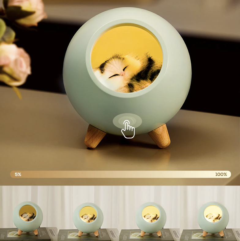 Forestil dig et soveværelse, hvor den lille føler sig tryg og omfavnet af en blød glød. Vores bedårende genopladelig kat natlampe til børn er mere end bare en lampe – den er en lille sød sovekammerat, der bringer ro og hygge ind i sengetiden. Med sit charmerende design af en sovende kattekilling i et blidt oplyst rum, er den perfekt til at berolige små sjæle og hjælpe dem med at falde i søvn. Den hvide, fluffy killing, der ligger lige ved siden af lampen, forstærker følelsen af tryghed og hygge, og skaber et magisk miljø, hvor drømme kan udfolde sig.