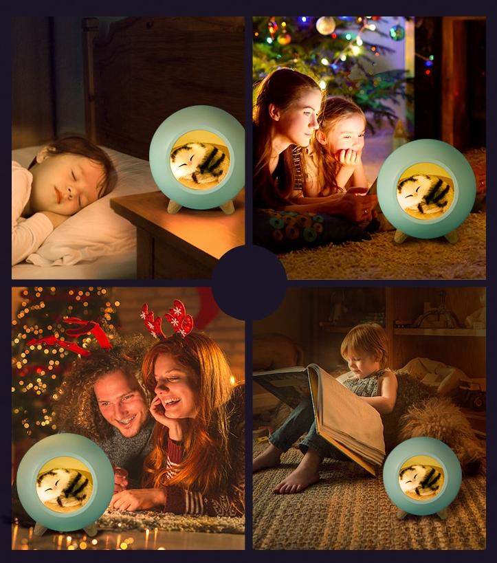 - Beroligende Lys: Skaber en tryg og hyggelig atmosfære, der hjælper børn med at falde i søvn.