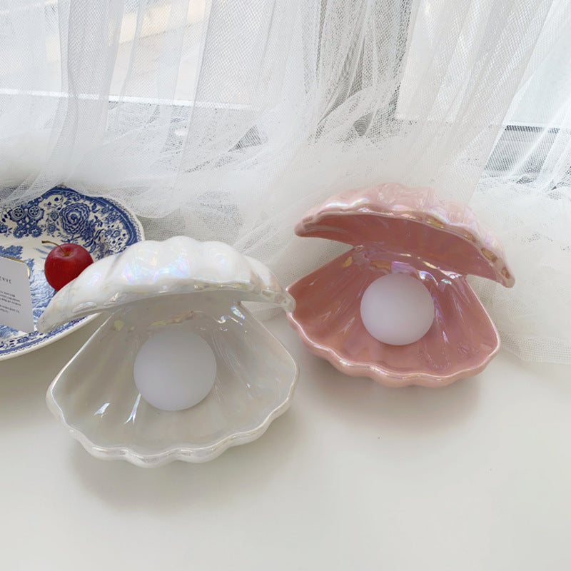 Skab din egen Undervandsverden med en Muslingeskal Natlampe med Perle Lys