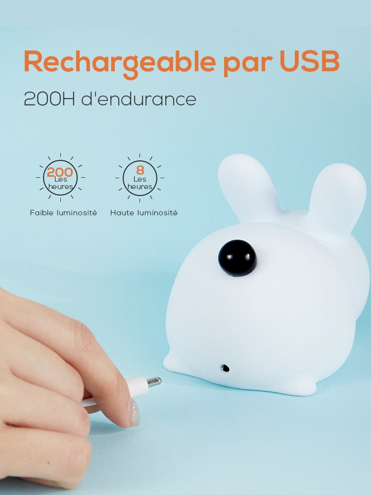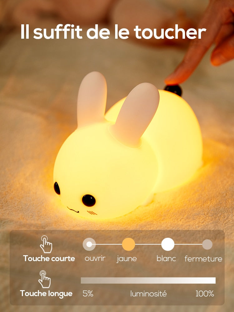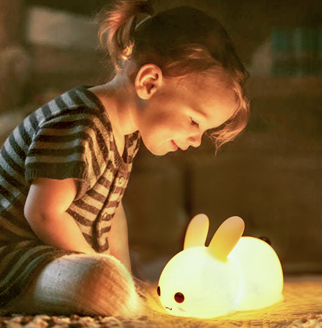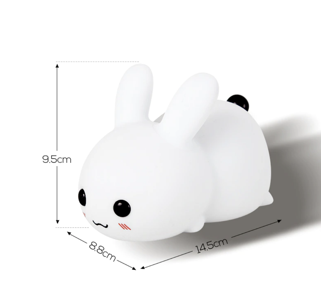 Giv dit barn en tryg og sød Silikone Kanin Natlampe med Touch Kontrol, der lyser op i mørket og skaber de bedste rammer for en god nats søvn.