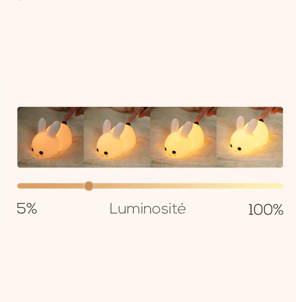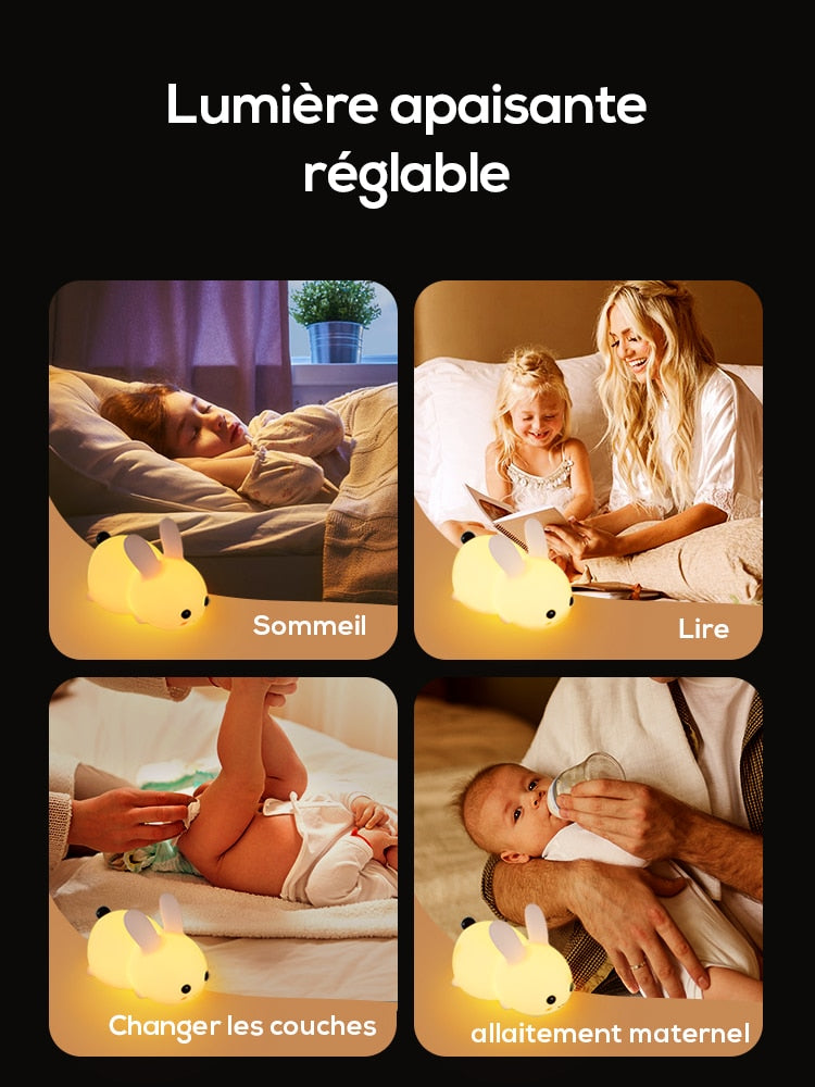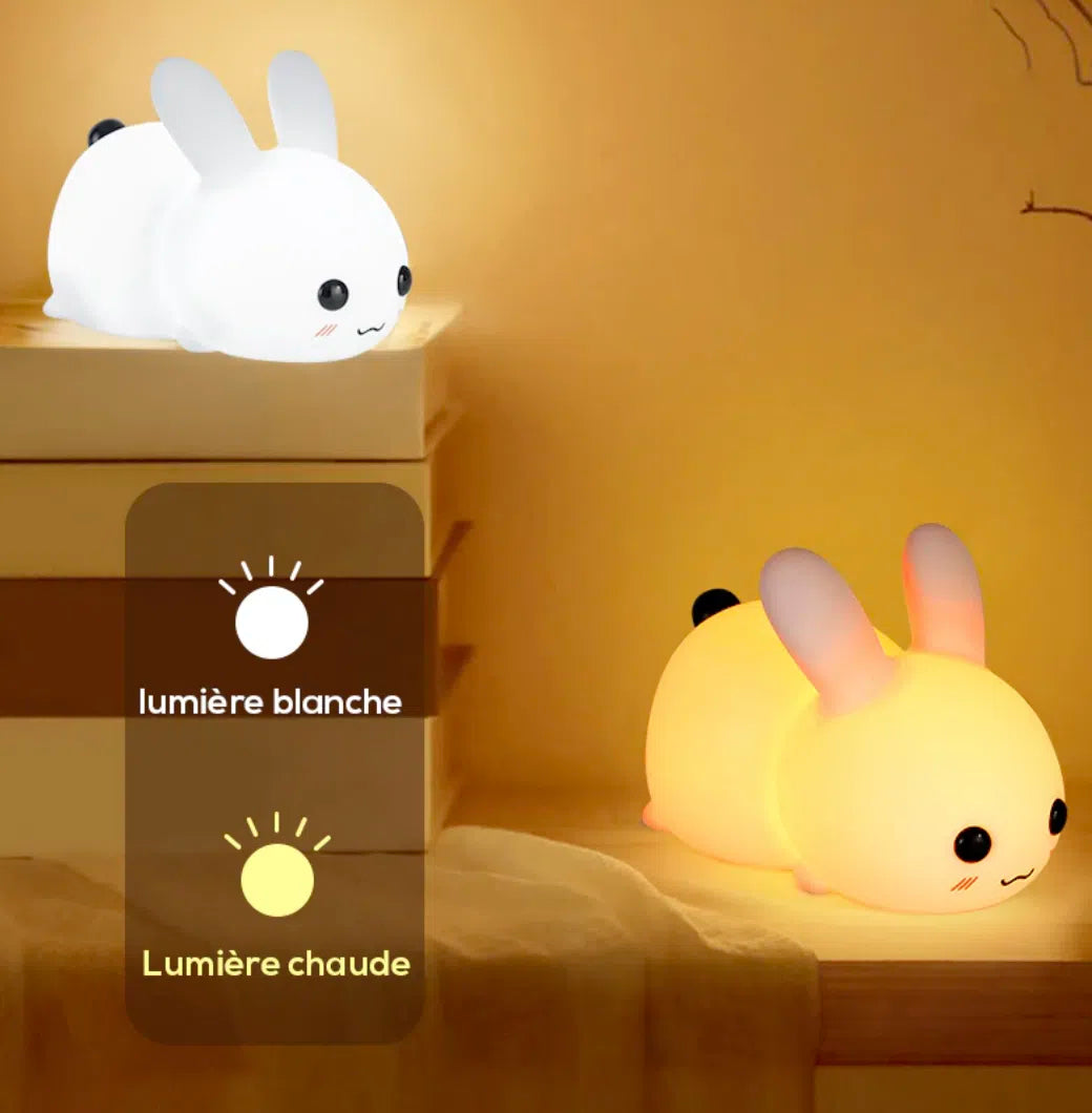 Giv dit barn en tryg og sød Silikone Kanin Natlampe med Touch Kontrol, der lyser op i mørket og skaber de bedste rammer for en god nats søvn.