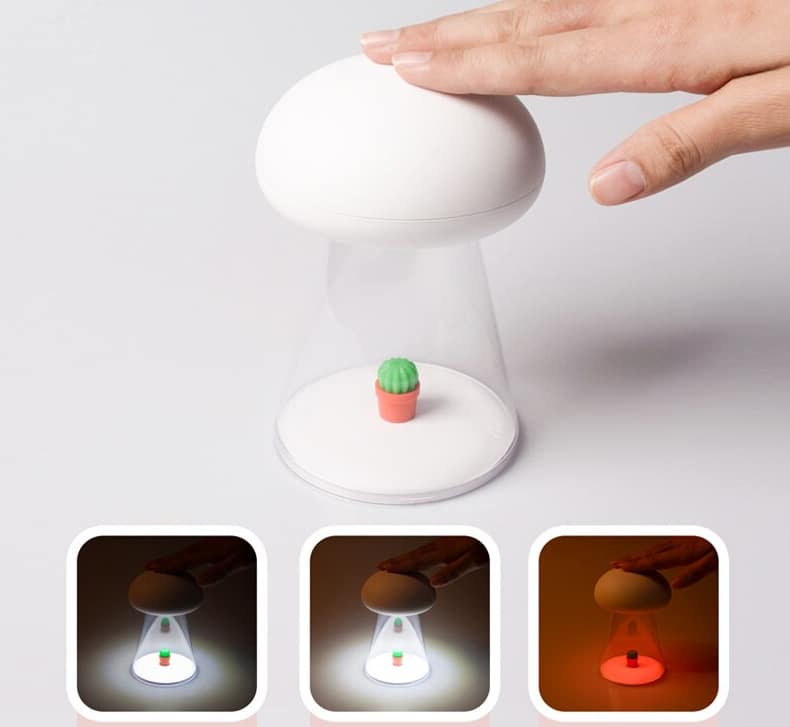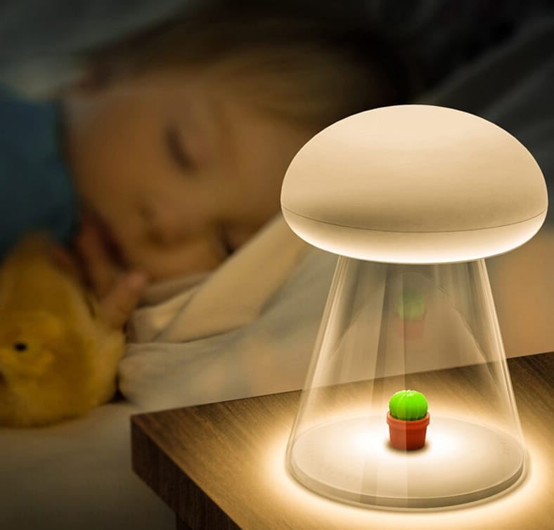 Forestil dig en godnathistorie, der pakker dit barn ind i en verden af ro og blidhed. Vores innovative Svamp natlampe med musik og touch er designet til at skabe den perfekte atmosfære for en tryg nattesøvn. Med sit charmerende svampedesign og indbyggede funktioner er denne natlampe mere end bare lys – den er en oplevelse, der beroliger sanserne og inviterer til søde drømme. Lad dit barn falde i søvn til blide melodier, mens det varme, dæmpede lys holder mørket på afstand og en lille kaktus indeni giver et hyggeligt touch af naturen. En ægte ven ved sengetid, der både er smuk og funktionel.